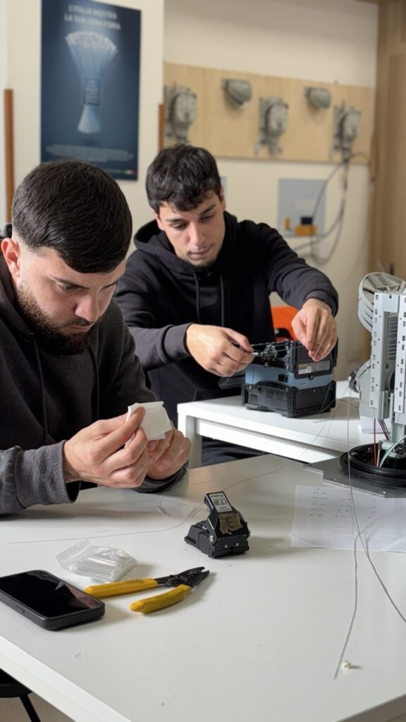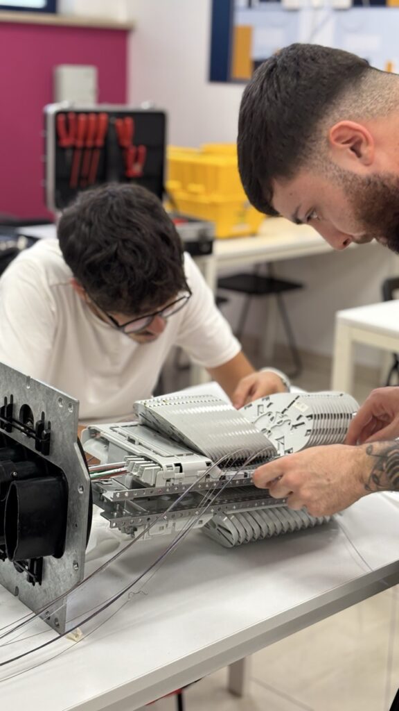 Il corso completo ha una durata di 5 settimane e include anche formazione sulla sicurezza, formazione base su reti elettriche e delivery FTTH.
